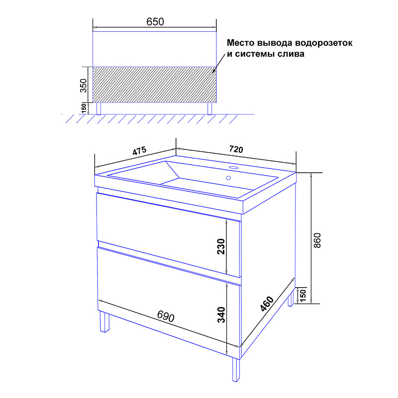 Тумба напольная Azario с раковиной Мила 70Н с раковиной Tempo 70 (CS00092800)