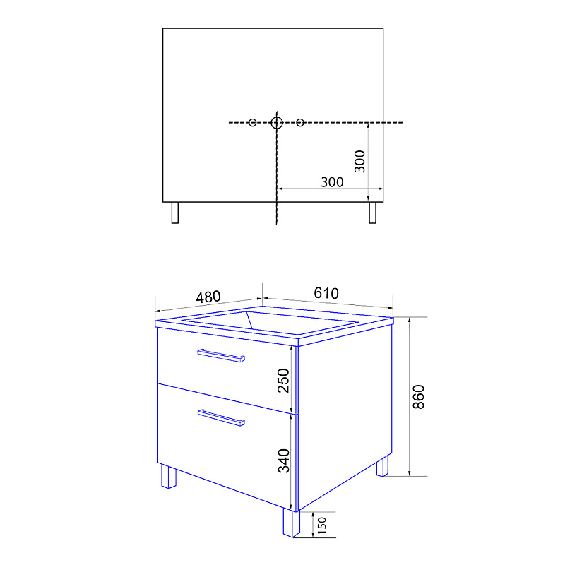 Тумба напольная Azario с раковиной Ника 60 Н с раковиной Tempo 60 (CS00091368)