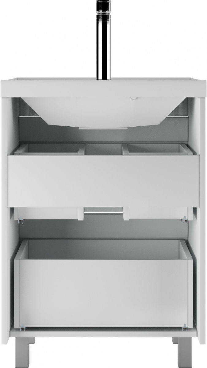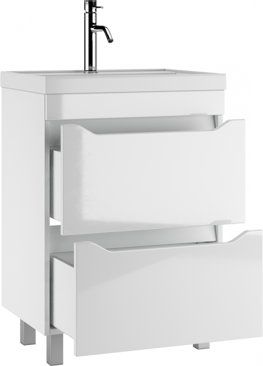 Тумба под умывальник ""Bazis 60"" Ева с двумя ящиками В2 Айсберг станет отличным дополнением для любой ванной комнаты. Тумбочка подходит для установки под раковину, обеспечивая удобство и стиль. Напольная конструкция позволяет легко разместить её в нужном месте, создавая гармоничное пространство.