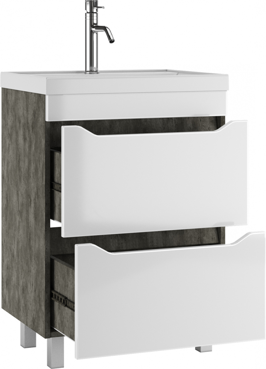 Тумба напольная Bazis 60 Ева с двумя ящиками В2 Бетон Айсберг Домино (DA5915T)