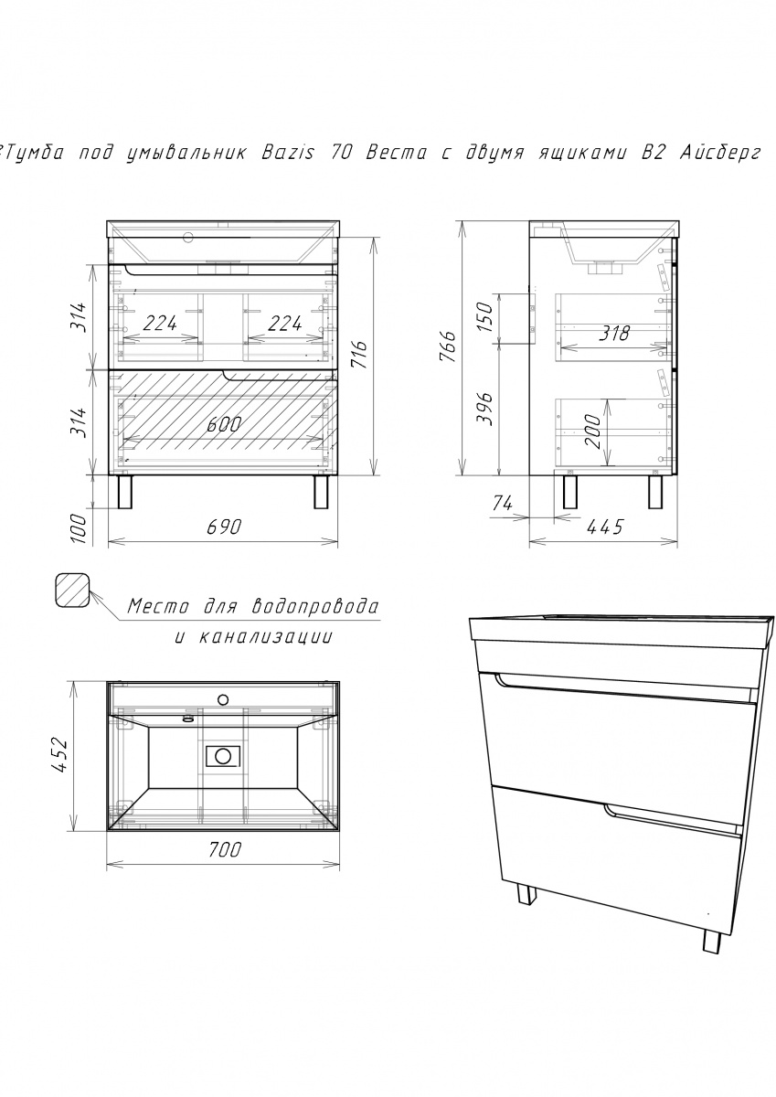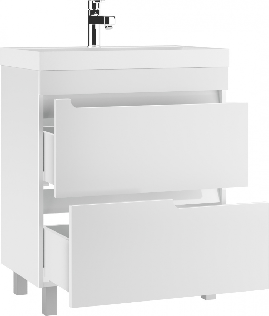 Тумба под умывальник ""Bazis 70"" Веста – идеальное решение для вашей ванной комнаты. Этот стильный и функциональный предмет мебели выполнен в современном дизайне, который легко впишется в любой интерьер. Тумба оснащена двумя вместительными ящиками, что позволяет удобно организовать пространство и хранить все необходимые вещи под рукой. Обратите внимание на практичные размеры и эргономичную конструкцию. Ящики плавно открываются и закрываются, обеспечивая легкий доступ к содержимому. Особое внимание уделено качеству материалов, что гарантирует долговечность и устойчивость к влаге, что особенно важно для использования в ванной.