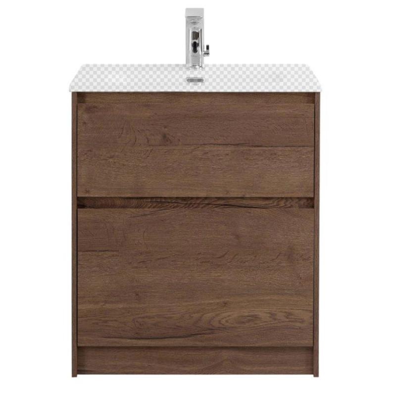 Материал: Мдф/Дсп, база под раковину напольная с фрезерованными ручками по всей длине фасада с двумя выкатными ящиками, цвет: rovere tabacco.