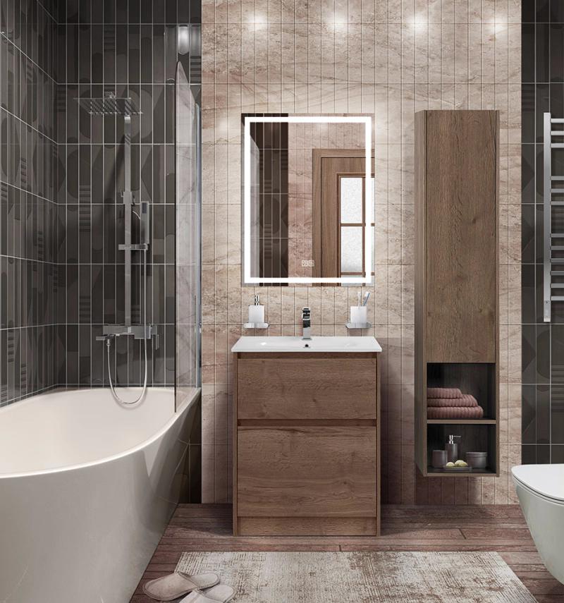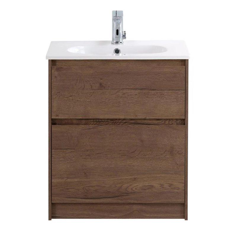 Материал: Мдф/Дсп, база под раковину напольная с фрезерованными ручками по всей длине фасада с двумя выкатными ящиками, цвет: rovere tabacco.