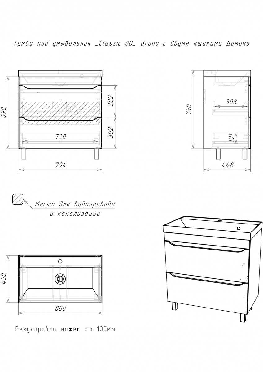 Тумба под умывальник ""Classic 80"" Bruno с двумя ящиками Домино в ванную — отличное решение для модернизации пространства. Эта мебель предоставит вашей ванной комнате стиль и функциональность. Тумбочка в ванную предназначена для комфортного хранения необходимых принадлежностей благодаря двум выдвижным ящикам с направляющими скрытого монтажа. Это создает дополнительное удобство при использовании, а также обеспечивает плавное открытие и закрытие.