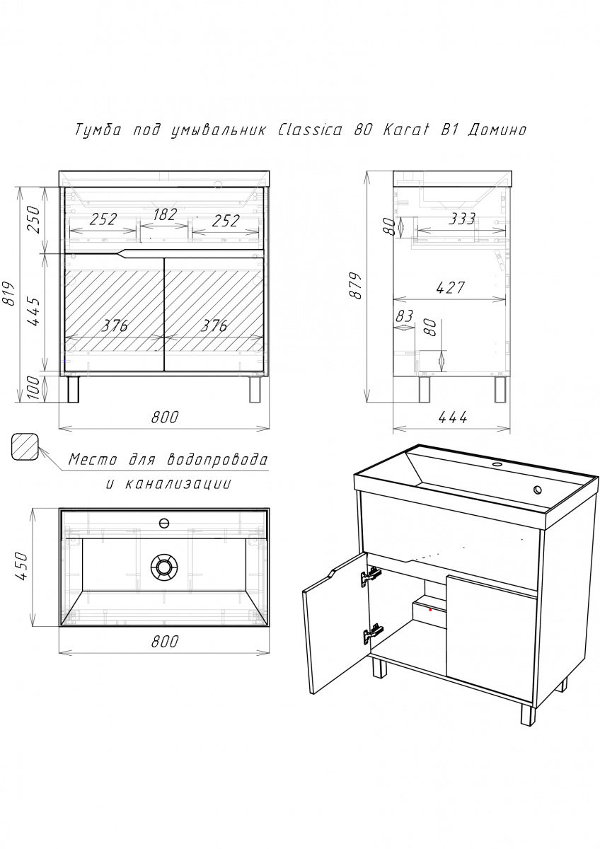 Тумба напольная Classica 80 Karat Серый тауп В1 Домино (DK3213T)