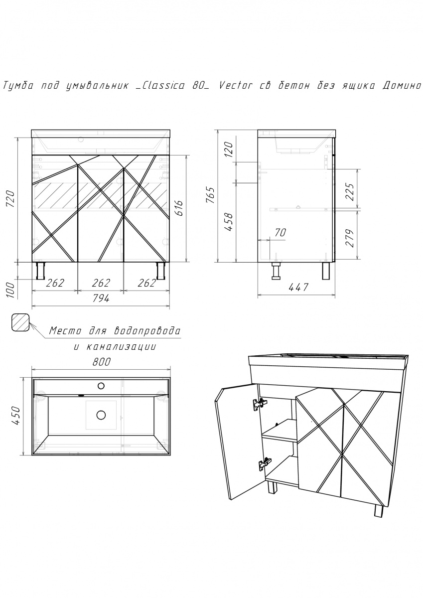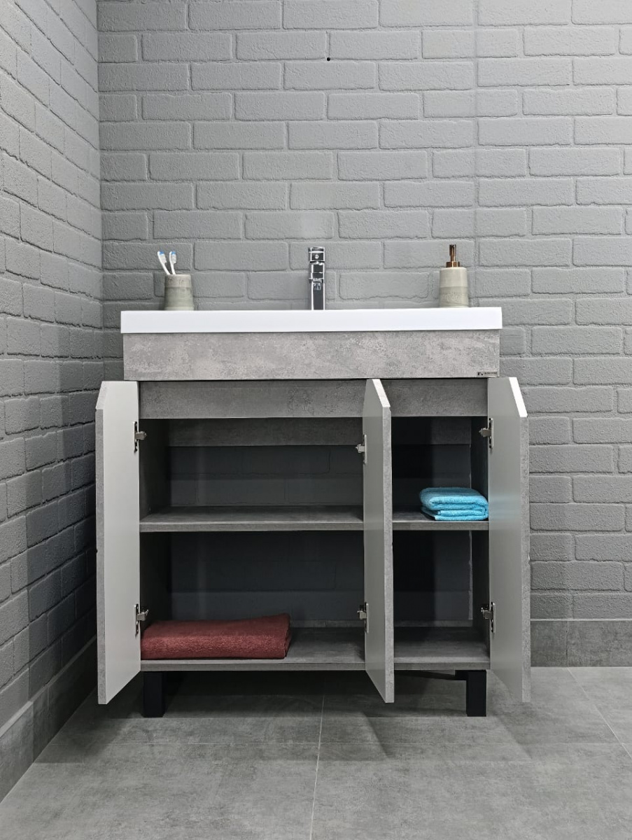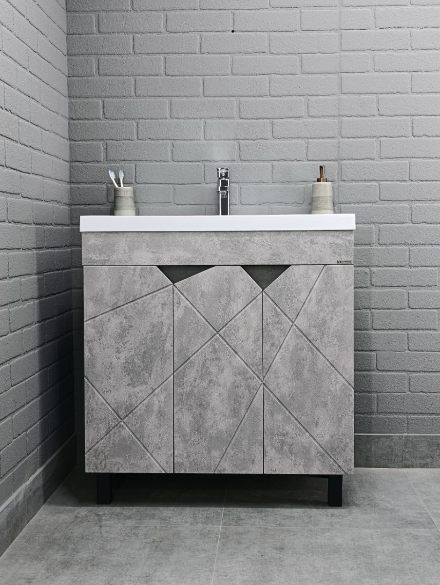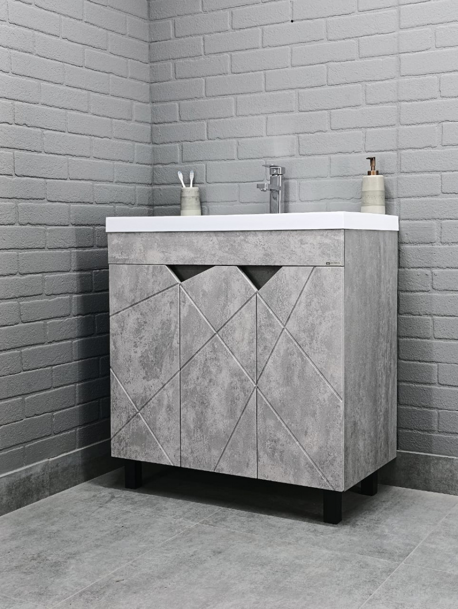 Тумба под умывальник ""Classica 80"" Vector св. бетон без ящика Домино идеально подходит для ванной комнаты. Универсальная тумбочка выполнена из качественных материалов, что обеспечивает долговечность и надежность.