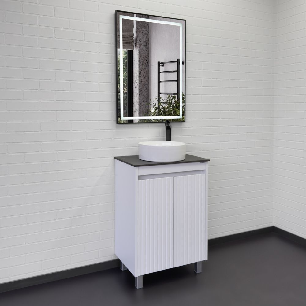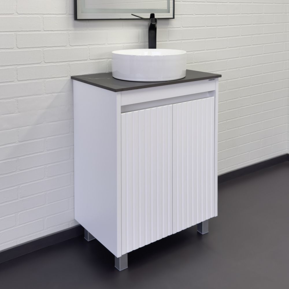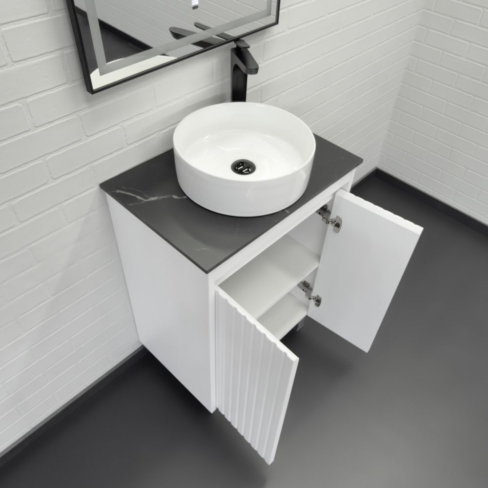 Комплектация: накладная керамическая раковина Comforty 9111, черная матовая столешница из керамогранита под мрамор Калакатта Блэк.