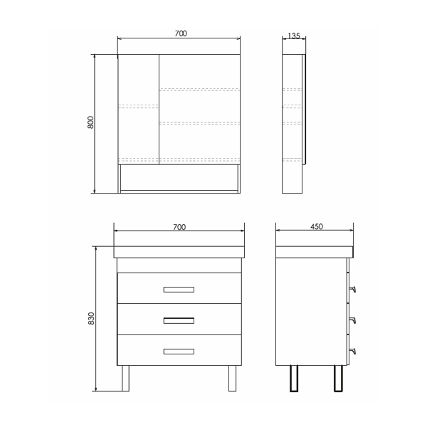 Тумба напольная Comforty Никосия 700x830x450 белый глянцевый с раковиной (00-00001506)