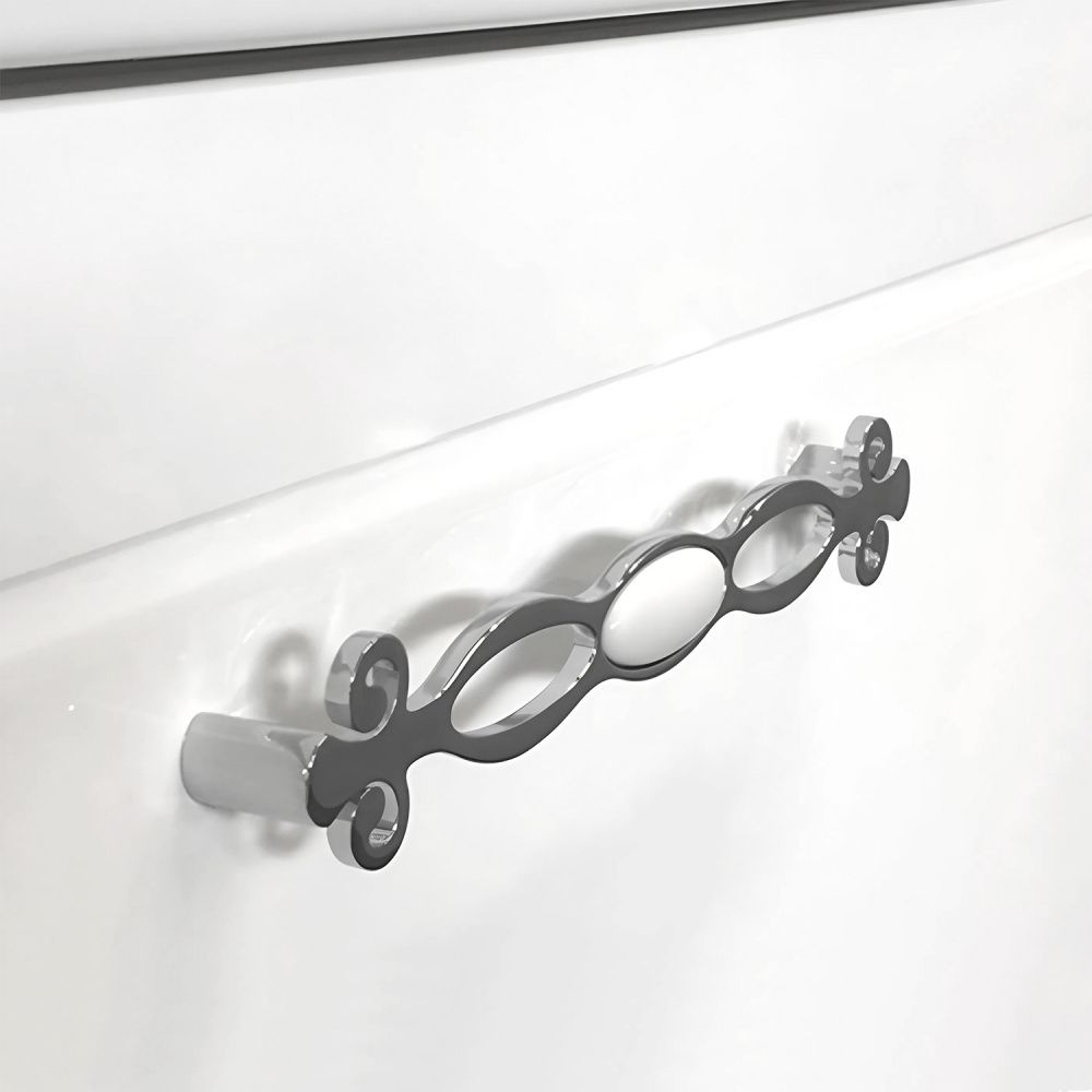 Широкая раковина столешница с овальной чашей и отверстием перелива. Оригинальная металлическая ручка-скоба.