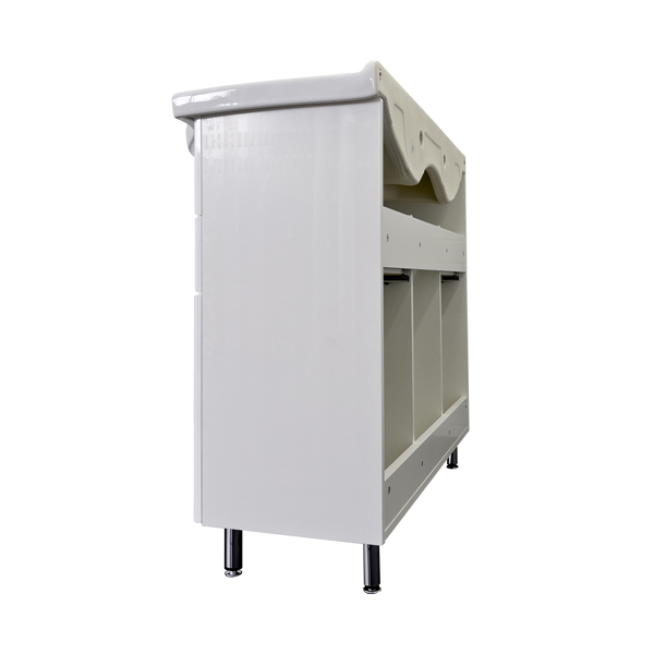 Широкая модель с обширным выбором места для хранения принадлежностей для умывания и бытовой химии. Тумба с тремя распашными дверцами и двумя ящиками. Створки оснащены петлями с плавным закрыванием. Фасады из МДФ покрыты белой глянцевой эмалью.