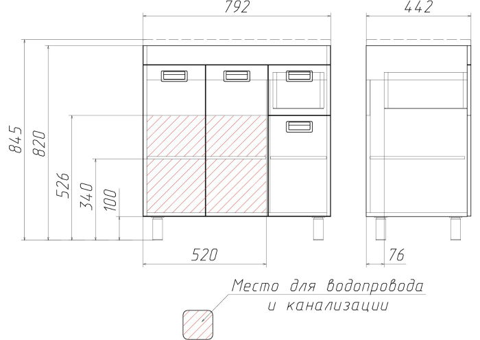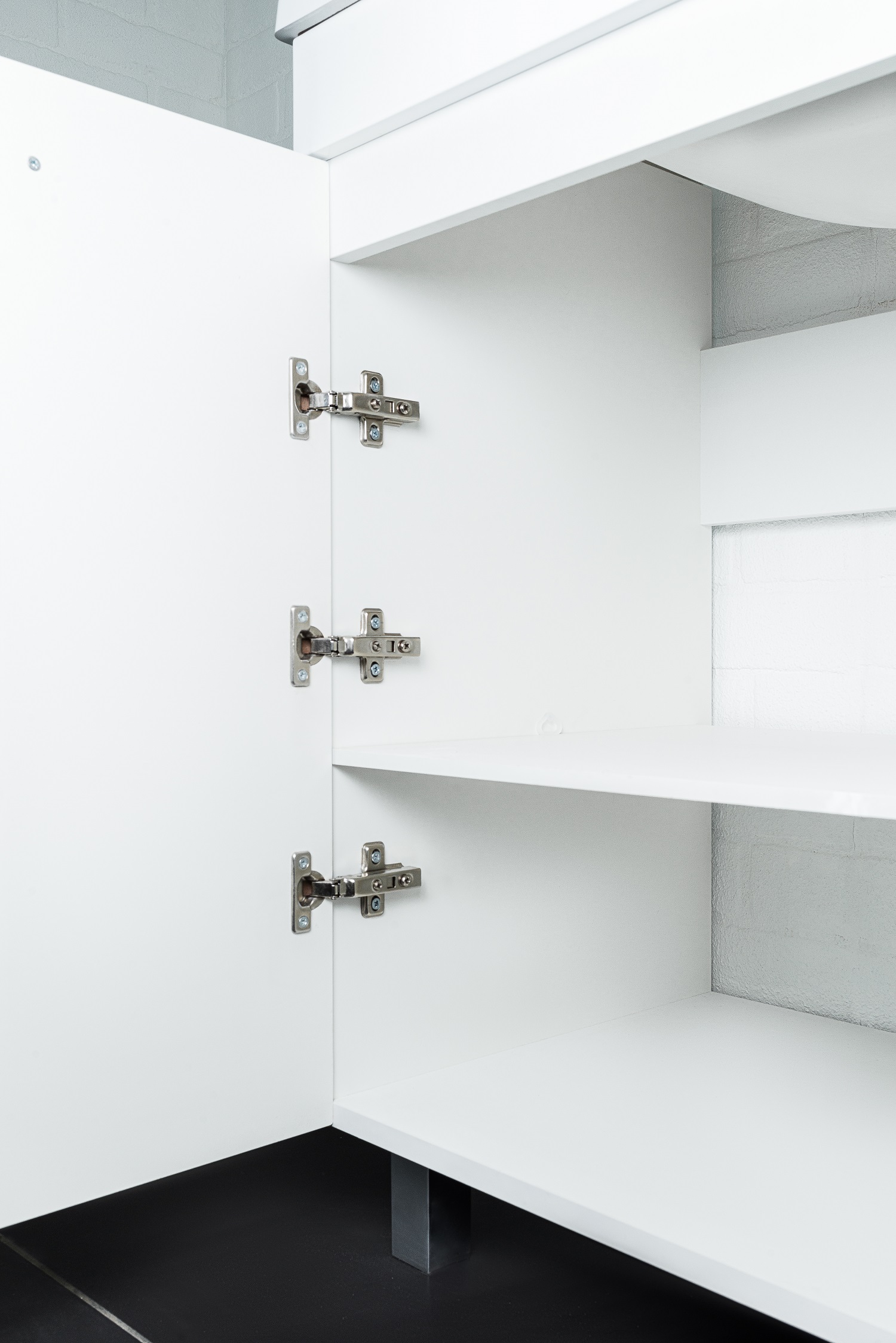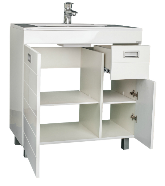 Корпус изделий выполнен из влагостойкого ЛДСП, покрытого глянцевой эмалью. Фасад выполнен из ЛМДФ и также покрыт глянцевой эмалью. Для бесшумного использования установлены петли с доводчиком и направляющие полного выдвижения, это увеличит уровень комфорта и эксплуатации.