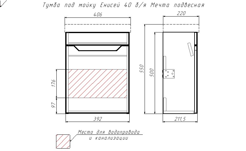 Дополнительная комплектация: Раковина встраиваемая Универсал Енисей 40