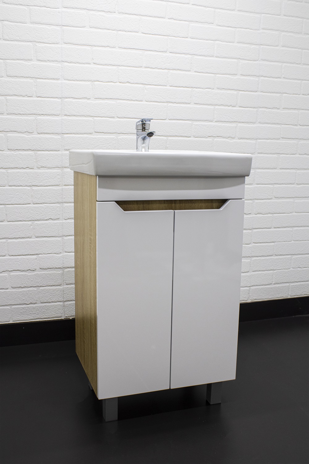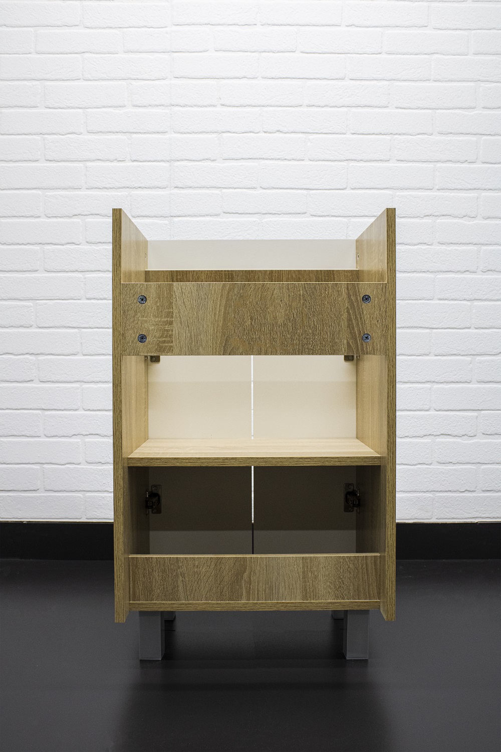 Тумба изготовлена из высококачественной ЛДСП и покрыт пленкой, защищающей поверхности от воздействия влаги.