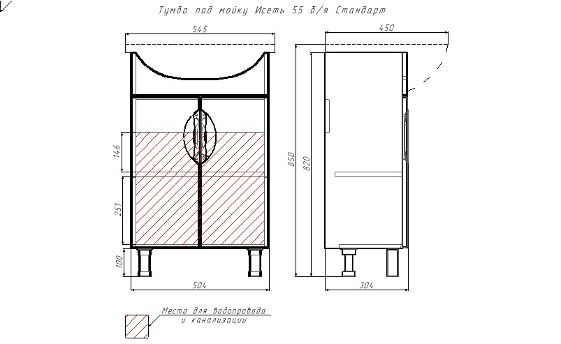 Дополнительная комплектация: Раковина встраиваемая Универсал Исеть 55