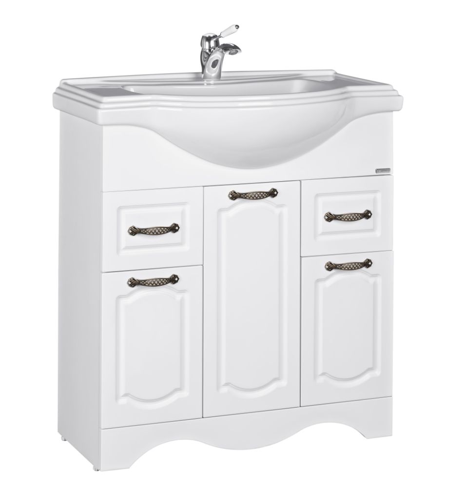 Тумба напольная RICH 80 КЛАССИКА имеет два выдвижных ящика и три открывающиеся, с помощью дверей секции.