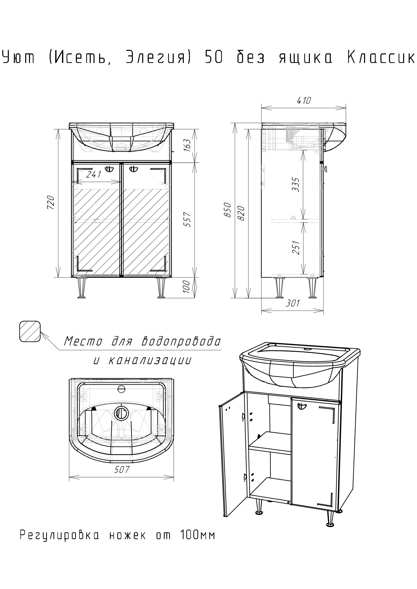 Дополнительная комплектация: Раковина встраиваемая Rosa Уют 50