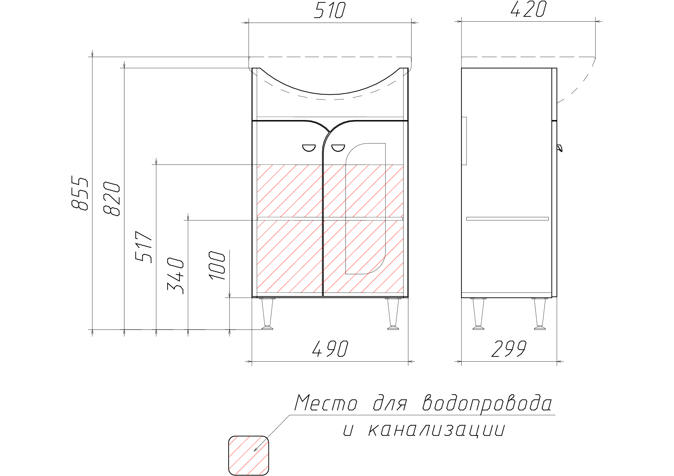 Дополнительная комплектация: Раковина встраиваемая Rosa Уют 50