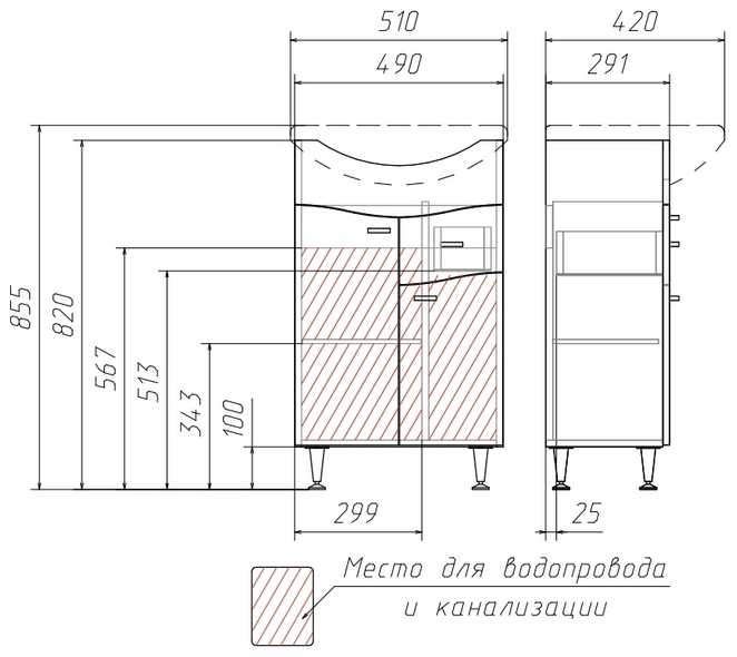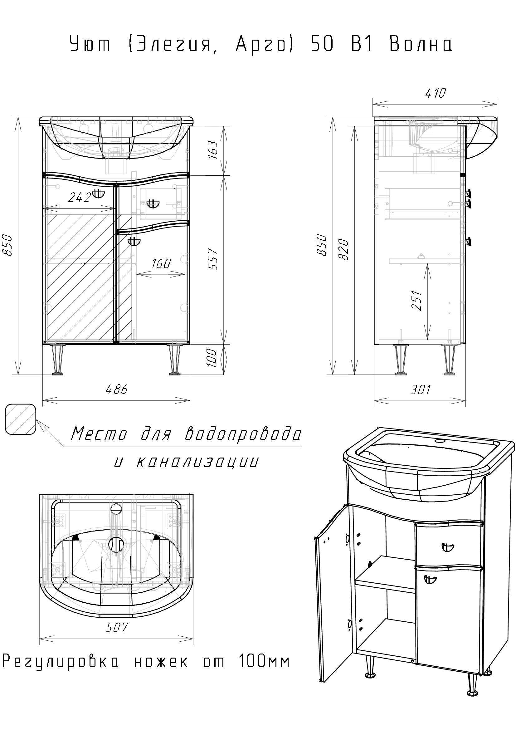 Дополнительная комплектация: Раковина встраиваемая Rosa Уют 50