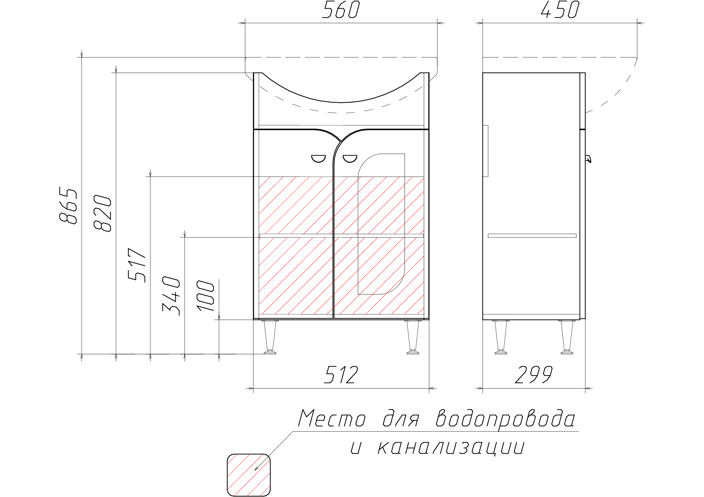 Дополнительная комплектация: Раковина встраиваемая Rosa Уют 55