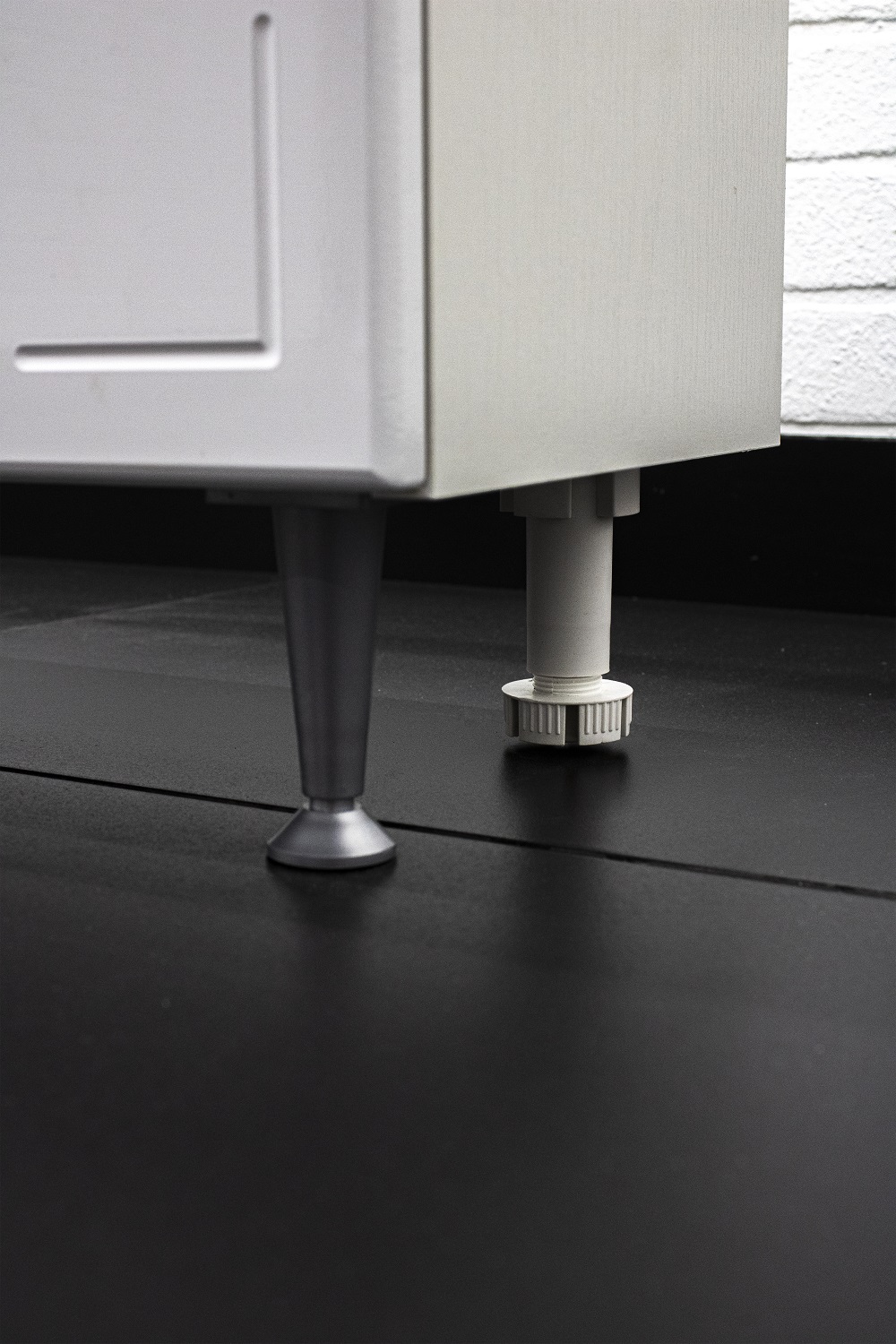 Корпус изготовлен из ЛДСП, а фасад из ЛМДФ, покрыт пленкой ПВХ. У напольной мебели возможна регулировка ножек до 30 мм, а для удобства в использовании на дверях установлены петли с доводчиком.