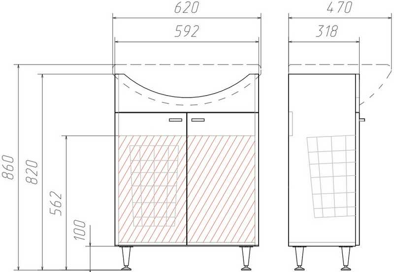 Тумба под умывальник Уют 60 классик с дверцами