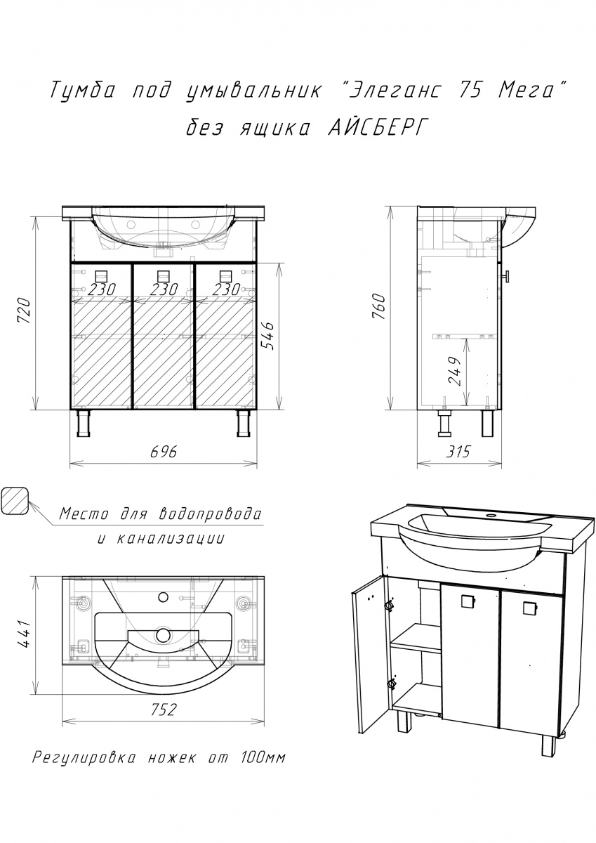 Тумба под умывальник ""Элеганс 75 Мега"" без ящика АЙСБЕРГ станет отличным дополнением для любой ванной комнаты. Тумбочка подходит для установки под раковину, обеспечивая удобство и стиль. Напольная конструкция позволяет легко разместить её в нужном месте, создавая гармоничное пространство.