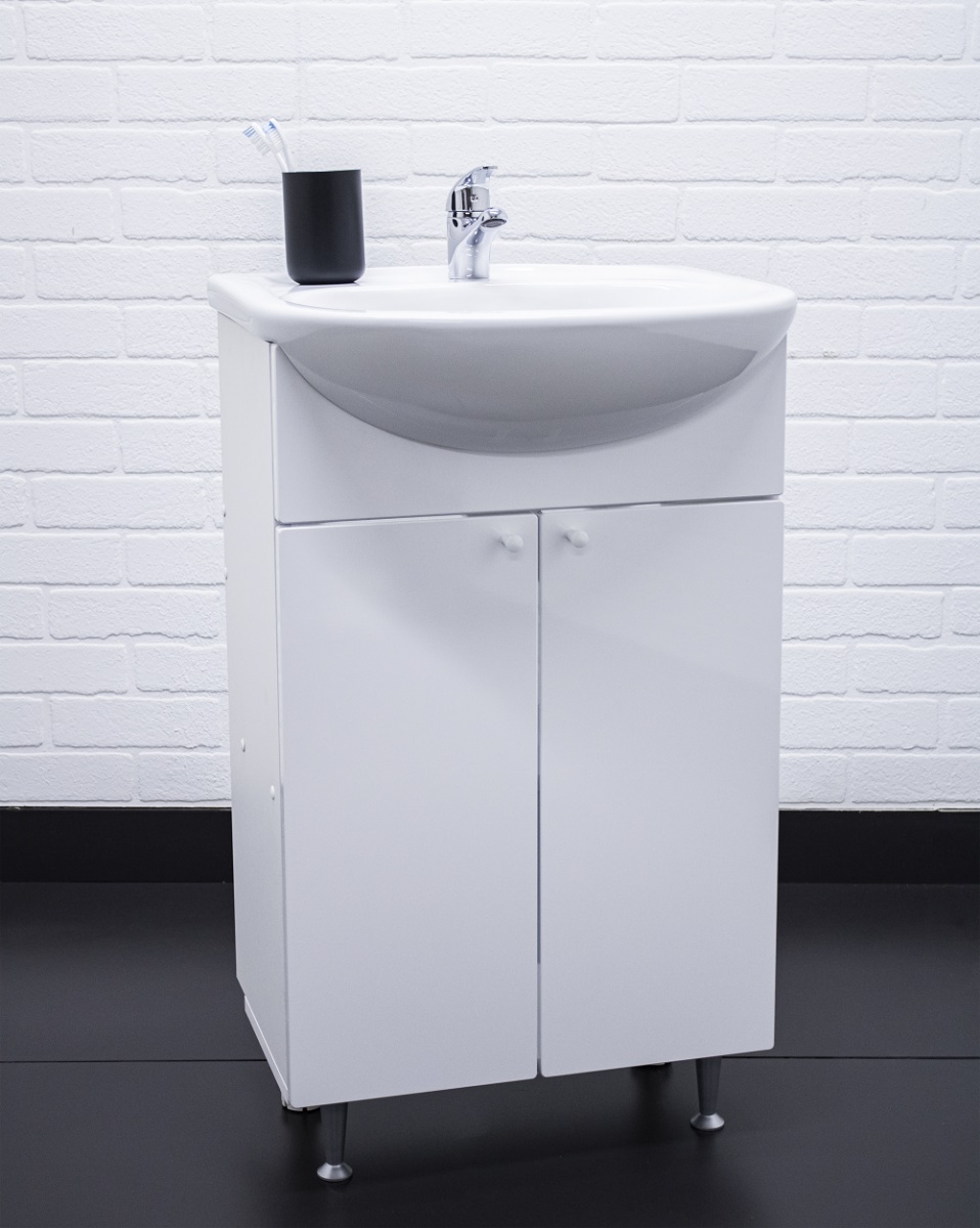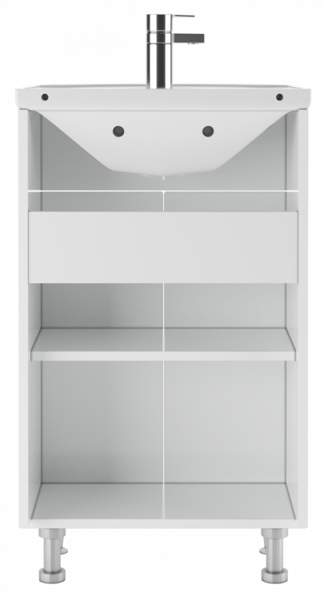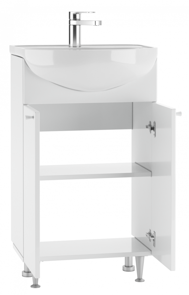 Тумба под умывальник ""Элегия 50"" Промо без ящика станет отличным дополнением для любой ванной комнаты. Тумбочка подходит для установки под раковину, обеспечивая удобство и стиль. Напольная конструкция позволяет легко разместить её в нужном месте, создавая гармоничное пространство. Мебель для ванной функциональна и элегантна. С полкой можно организовать дополнительные аксессуары или косметику, что делает использование тумбы особенно практичным.