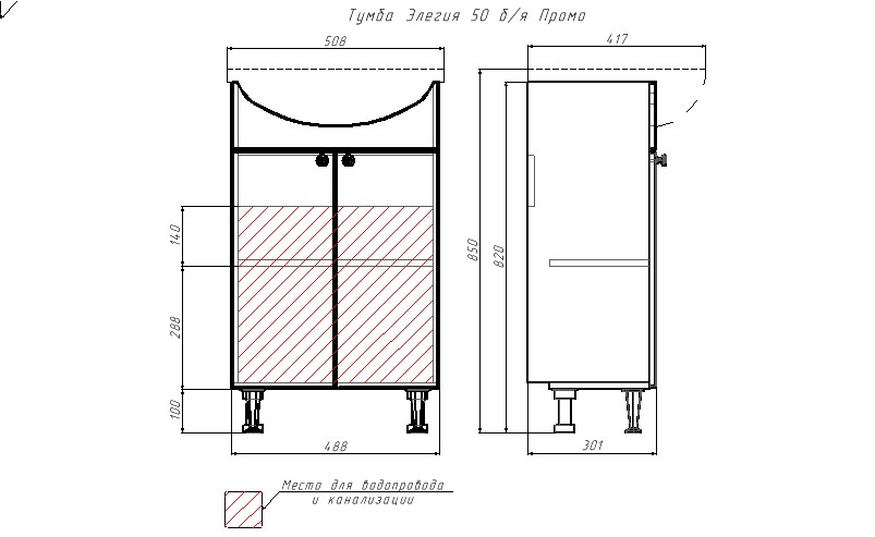 Тумба напольная Элегия 50 Промо без ящика Домино (DP2601T)