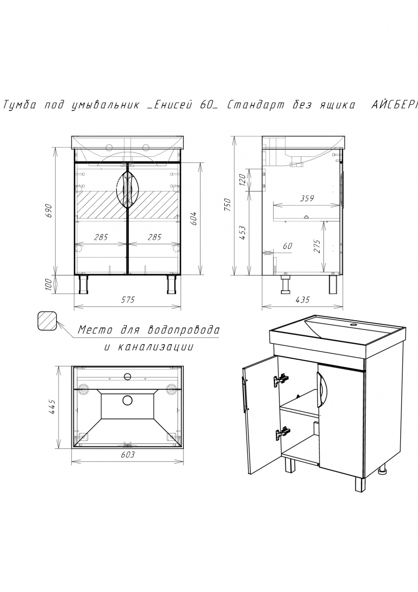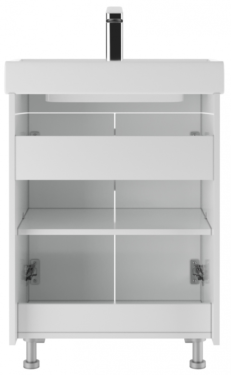 Тумба под умывальник ""Енисей 60"" Стандарт без ящика АЙСБЕРГ станет практичным решением для любой ванной комнаты. Эта мебель выполнена в белом цвете, что добавляет легкости и свежести в интерьер. Модель с одним ящиком удобна для хранения необходимых мелочей, оставляя пространство в чистоте и порядке.