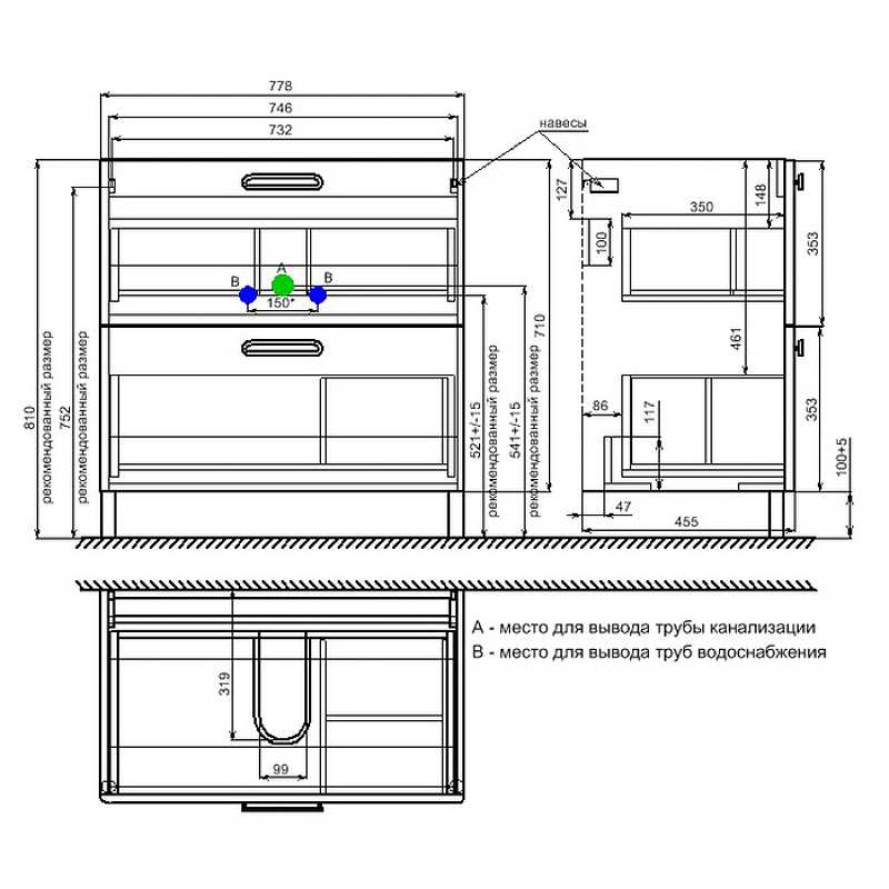 Монтаж: напольный, крепление к стене.
