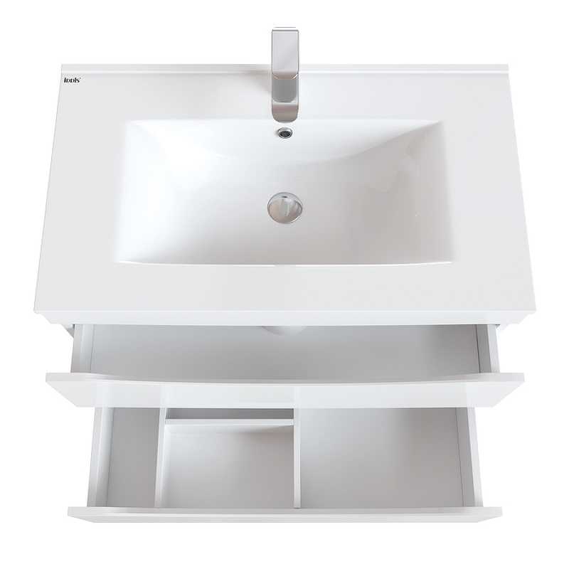 Напольная тумба с раковиной Iddis Cloud 80 CLO80WFi95K с двумя выдвижными ящиками с направляющими скрытого монтажа и механизмом плавного доведения. Предназначена для использования в ванных комнатах с повышенной влажностью. Плоская керамическая раковина повторяет закругленную форму тумбы. Надежная фурнитура рассчитана на 30 тысяч открываний. Направляющие выдерживают вес доверху наполненного ящика.