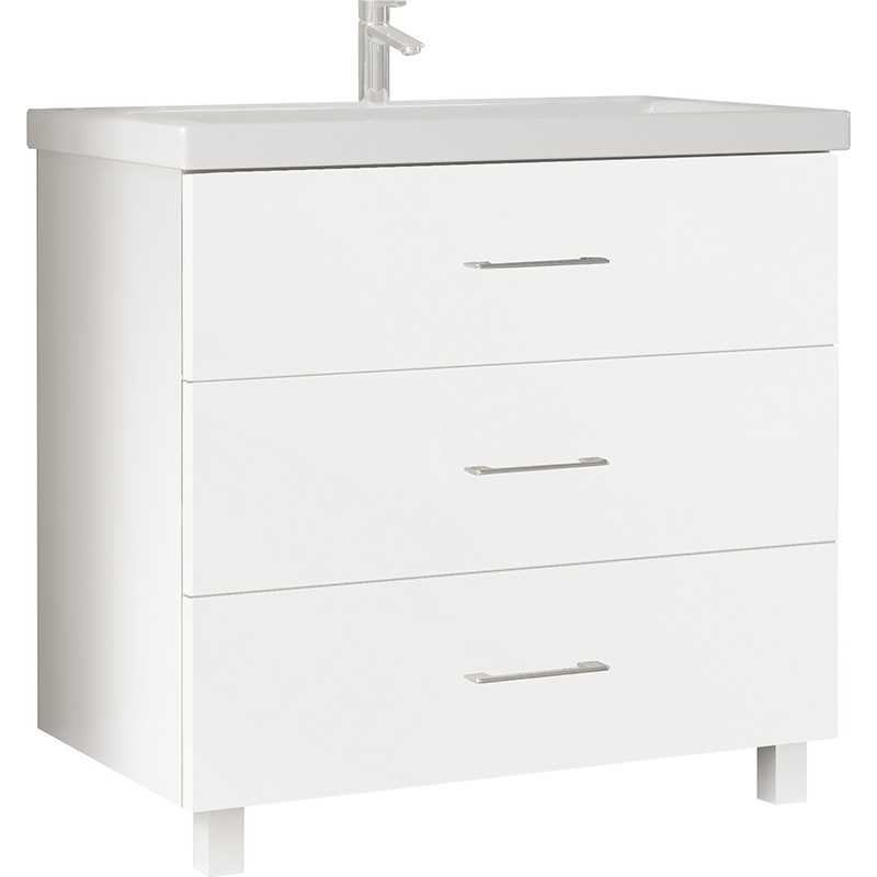 - Элегантная комбинированная тумба под раковину Marka One Mix 80Н белая глянцевая (У69543) с тремя выдвижными ящиками с ручками выполнена в минималистичном современном стиле.