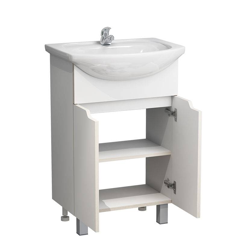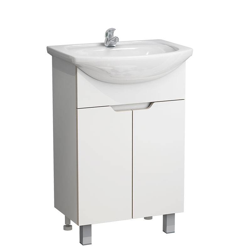 Тумба Гамма выполнена из влагостойкого ЛДСП и имеет компактные размеры, что позволяет разместить ее в любой ванной комнате. Тумба комплектуется раковиной Уют 60см, которая долго прослужит и будет радовать белизной и чистотой своих владельцев.
