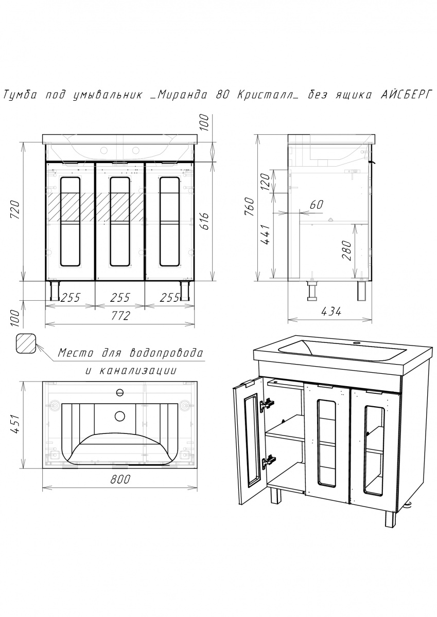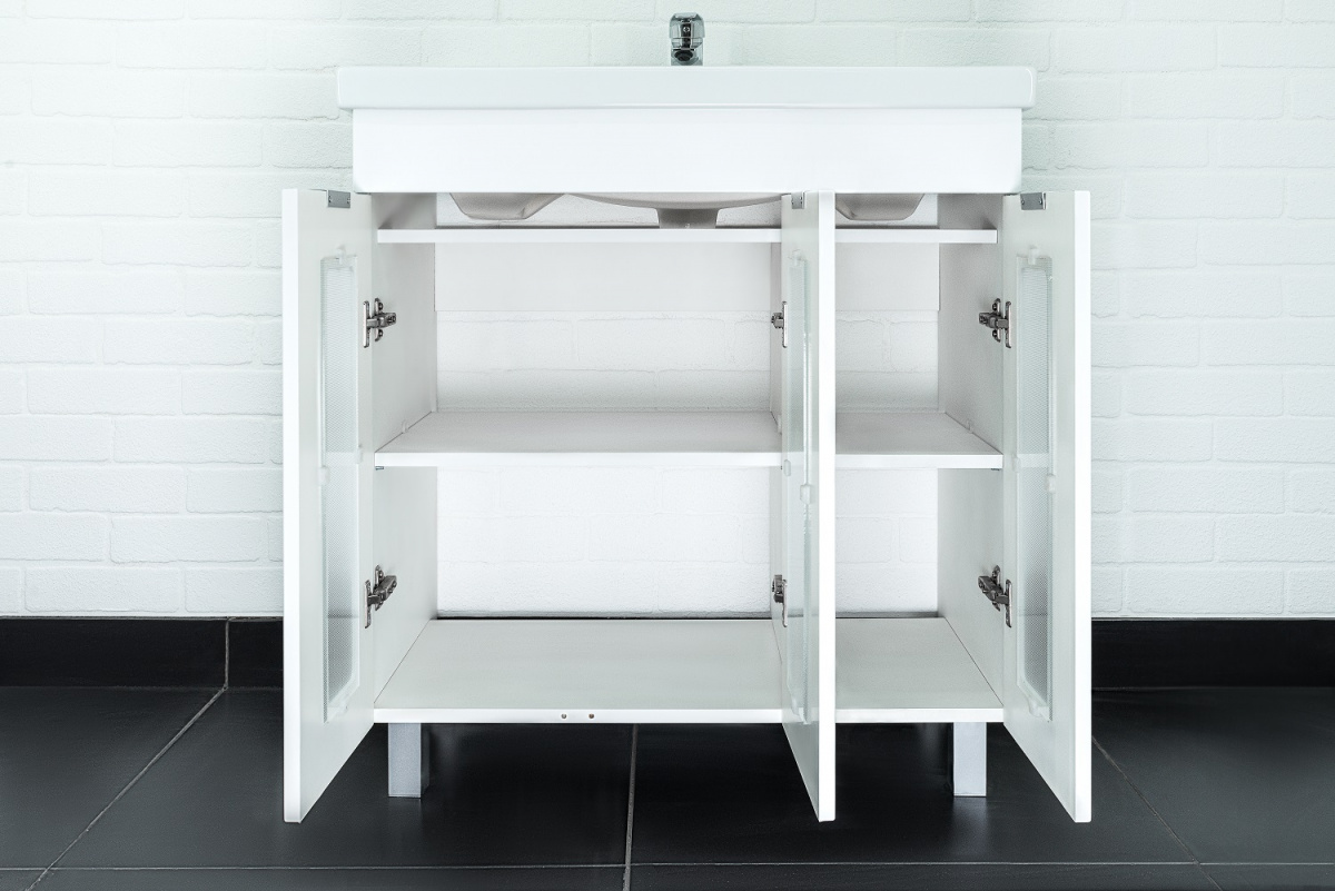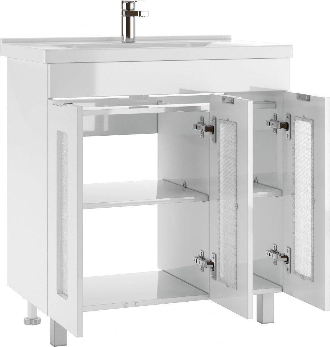 Тумба под умывальник ""Миранда 80/Maria 80 Кристалл"" без ящика АЙСБЕРГ станет отличным дополнением для любой ванной комнаты. Тумбочка подходит для установки под раковину, обеспечивая удобство и стиль. Напольная конструкция позволяет легко разместить её в нужном месте, создавая гармоничное пространство.