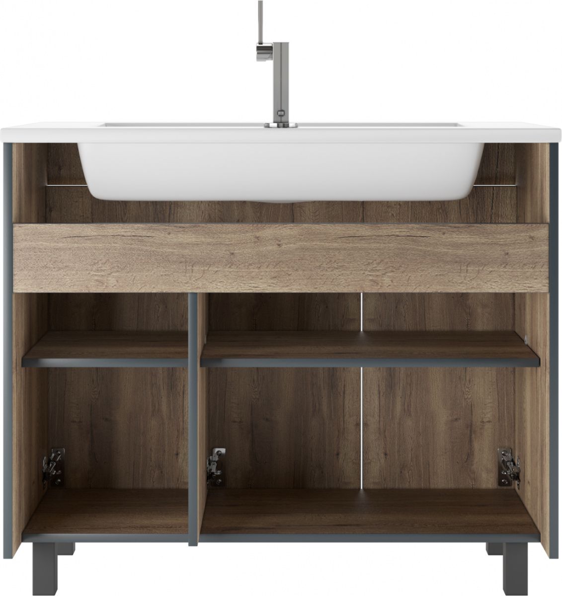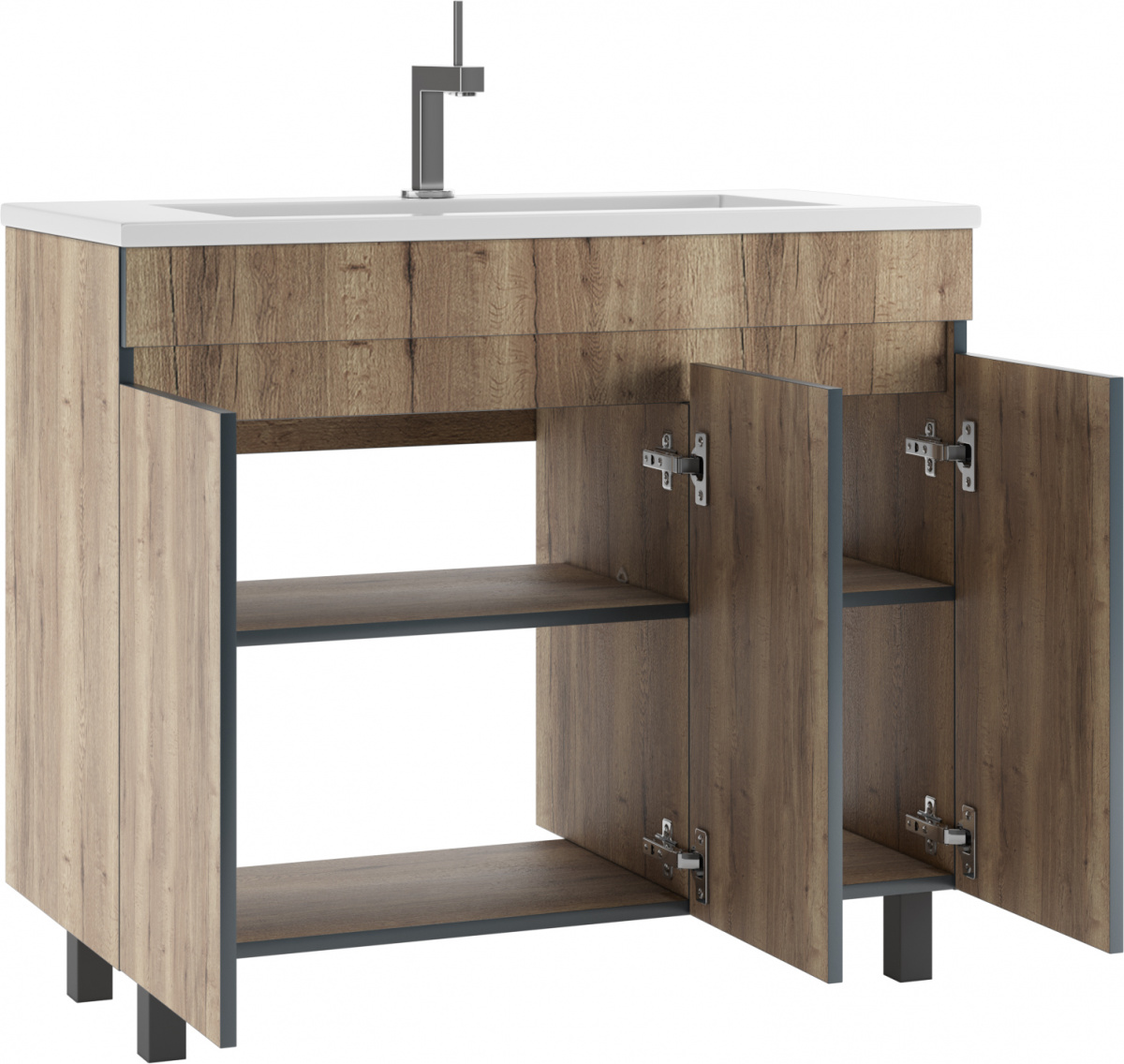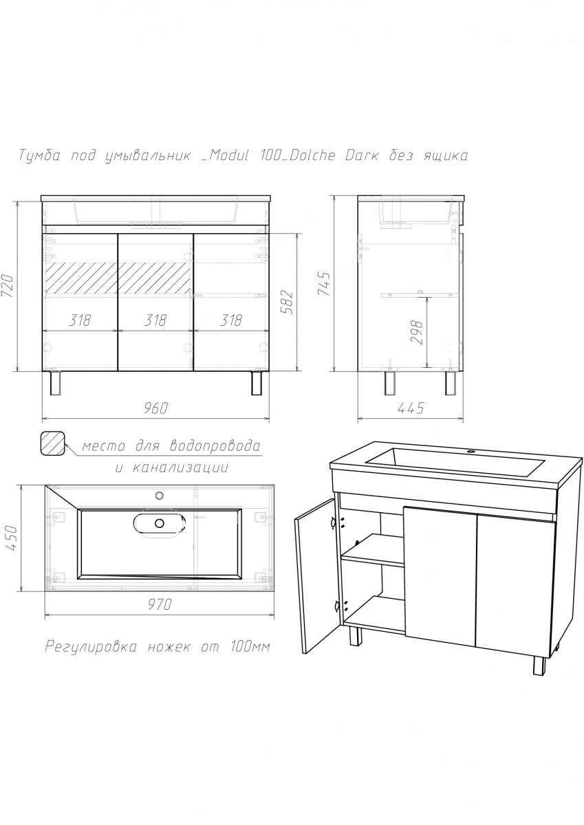 Тумба под умывальник ""Modul 100""Dolche Dark без ящика Домино станет отличным выбором для тех, кто ищет стильную и функциональную мебель для ванной. Это напольная тумба с распашными дверцами, оснащённая петлями с доводчиком. Она обеспечивает плавное и бесшумное закрывание и открывание. Мебель выполнена из ЛДСП, что придаёт ей не только эстетическую привлекательность, но и долговечность.