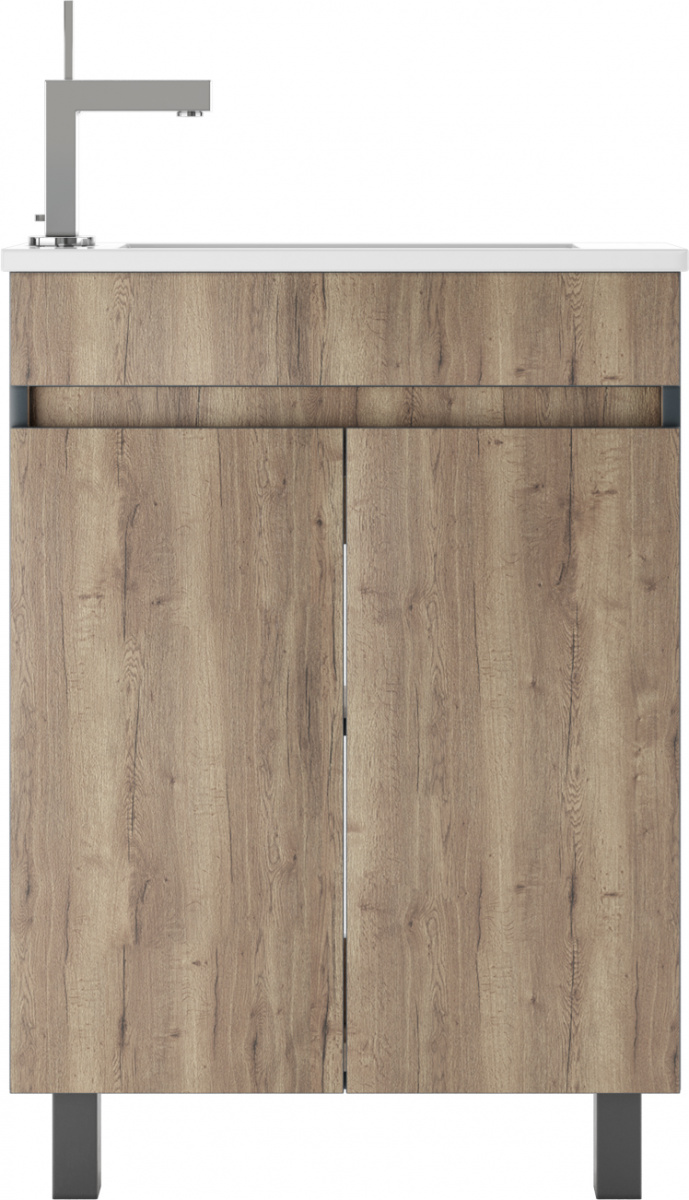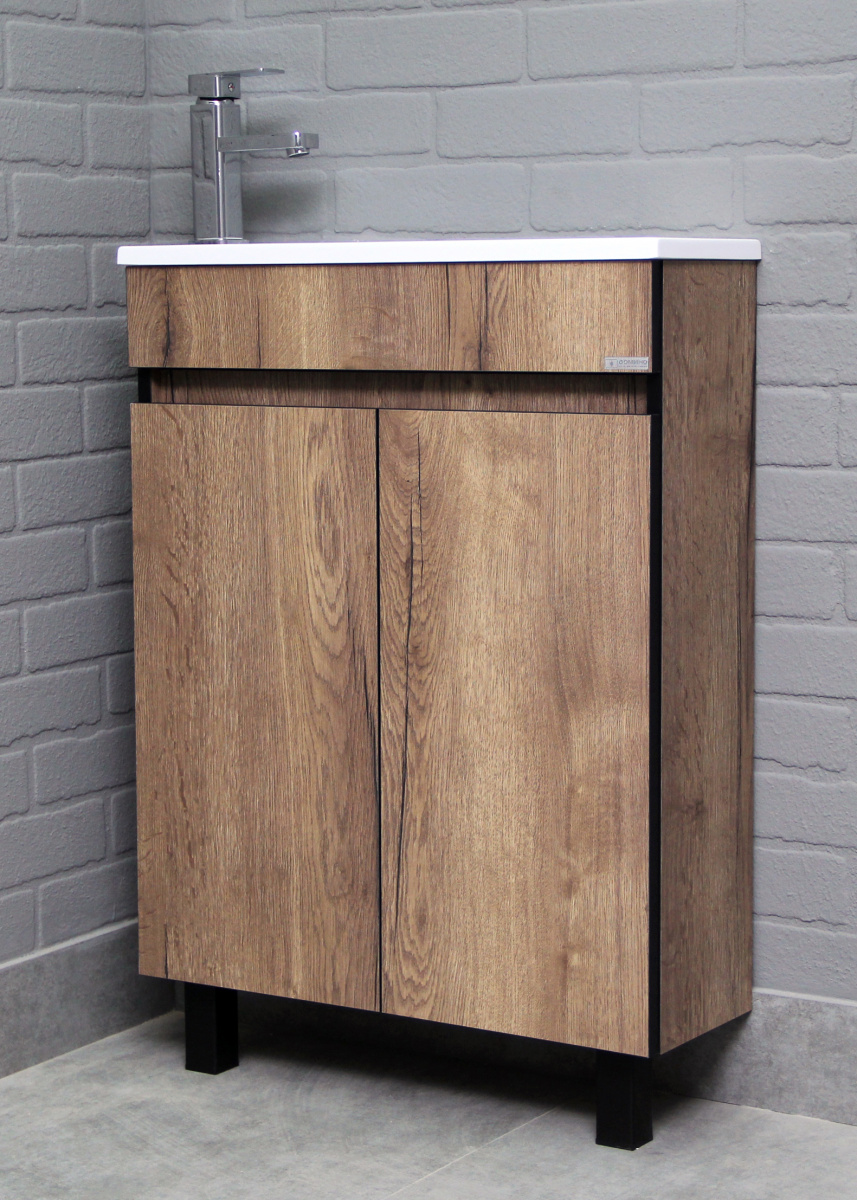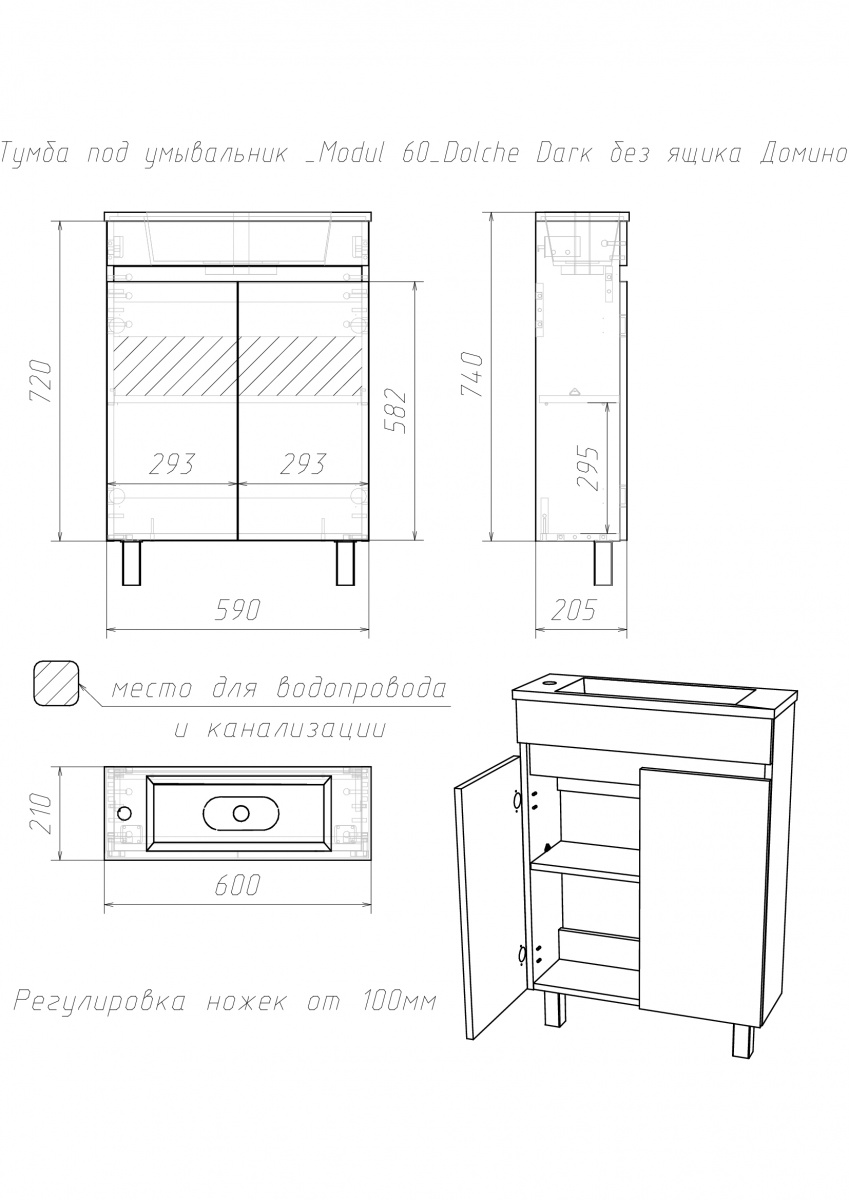 Тумба под умывальник ""Modul 60""Dolche Dark без ящика Домино станет отличным выбором для тех, кто ищет стильную и функциональную мебель для ванной. Это напольная тумба с распашными дверцами, оснащённая петлями с доводчиком. Она обеспечивает плавное и бесшумное закрывание и открывание. Мебель выполнена из ЛДСП, что придаёт ей не только эстетическую привлекательность, но и долговечность.