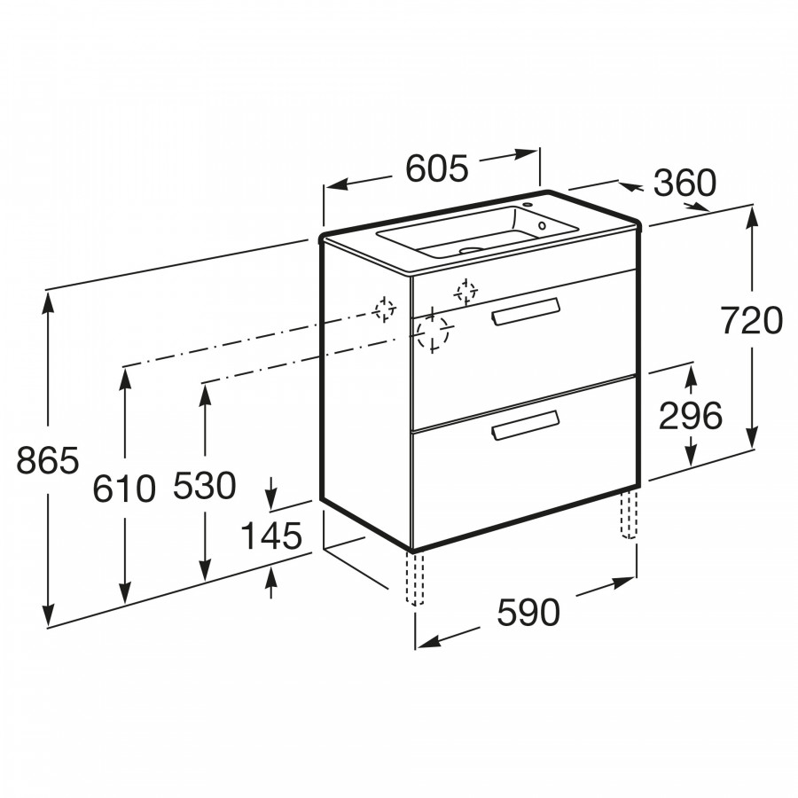 Тумба для раковины Debba в современном стиле от испанского бренда Roca, выполненная из влагостойкой высококачественной ЛДСП и МДФ.