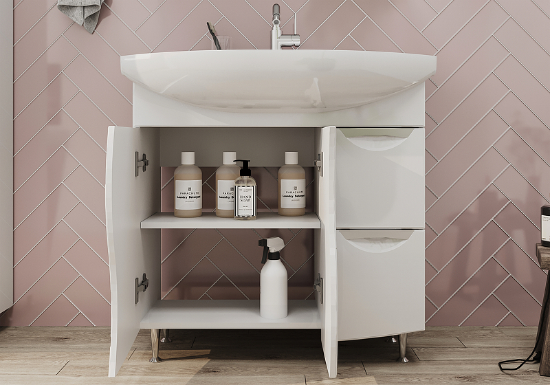 Система хранения: 2 распашные дверцы (внутри полка из ЛДСП), 2 выдвижных ящика.