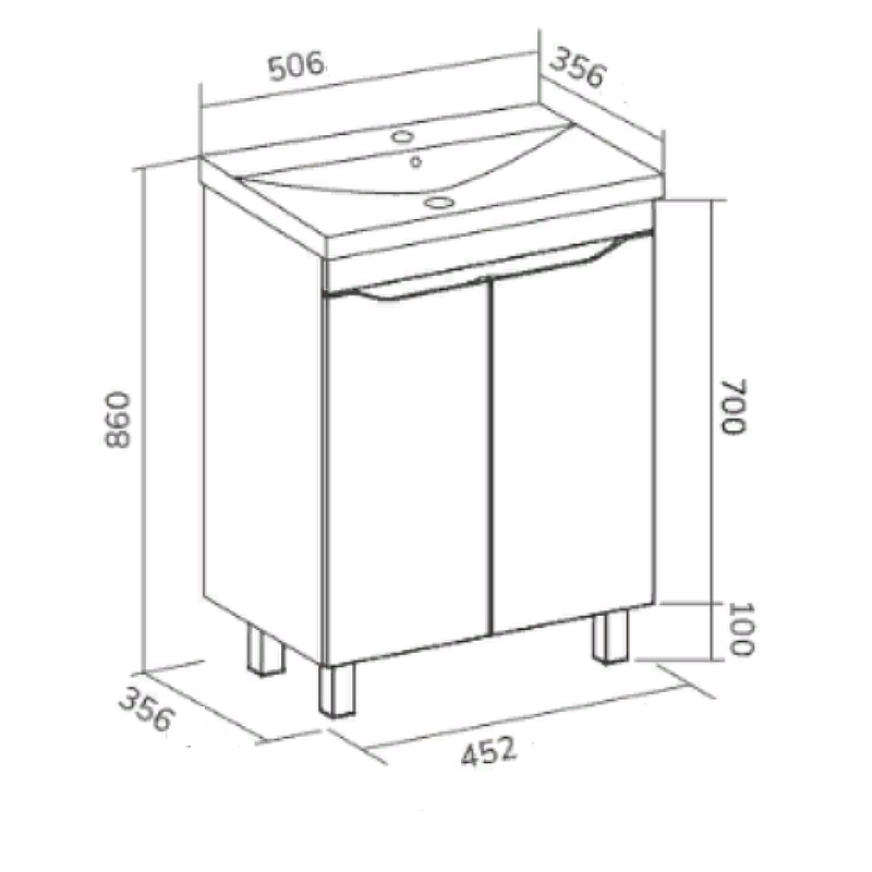 Система хранения: 2 распашные дверцы, внутри полка из ЛДСП.