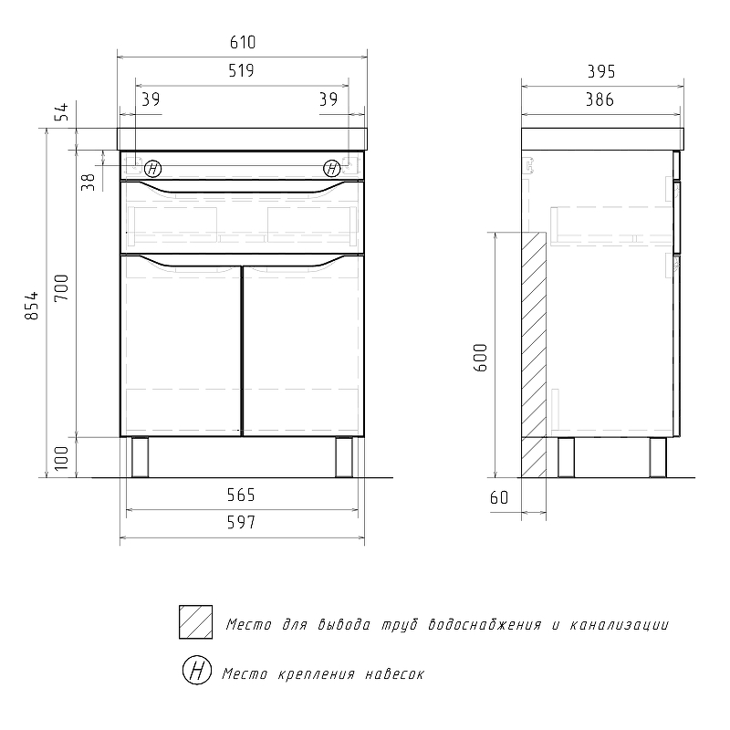 Тумба напольная Volna Lake 597x800 белая (tnLAKE60.2D.1Y-01)