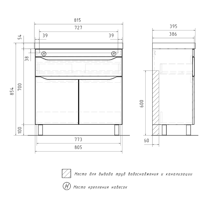 Оснащение: механизм доводчика (плавное и бесшумное закрывание).