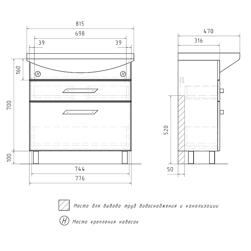 Система хранения: 2 выдвижных ящика.