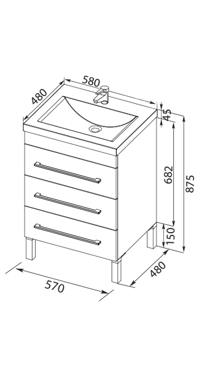 Тумба под раковину Aquanet Верона 58 480х570х832 3 ящика, белая (178253)