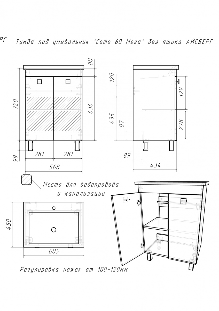 Тумба под умывальник ""Como 60 Мега"" без ящика АЙСБЕРГ станет отличным дополнением для любой ванной комнаты. Тумбочка подходит для установки под раковину, обеспечивая удобство и стиль. Напольная конструкция позволяет легко разместить её в нужном месте, создавая гармоничное пространство.