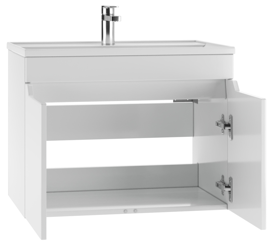 Тумба подвесная под умывальник ""Фостер 70"" Мечта без ящика АЙСБЕРГ является идеальным решением для вашей ванной комнаты, создавая ощущение простора благодаря особой конструкции. Мебель выполнена из ЛДСП и МДФ с пленкой ПВХ, что гарантирует долгий срок службы. Глянцевое покрытие придаёт белую поверхность не только эстетическую привлекательность, но и упрощает уход за ней.