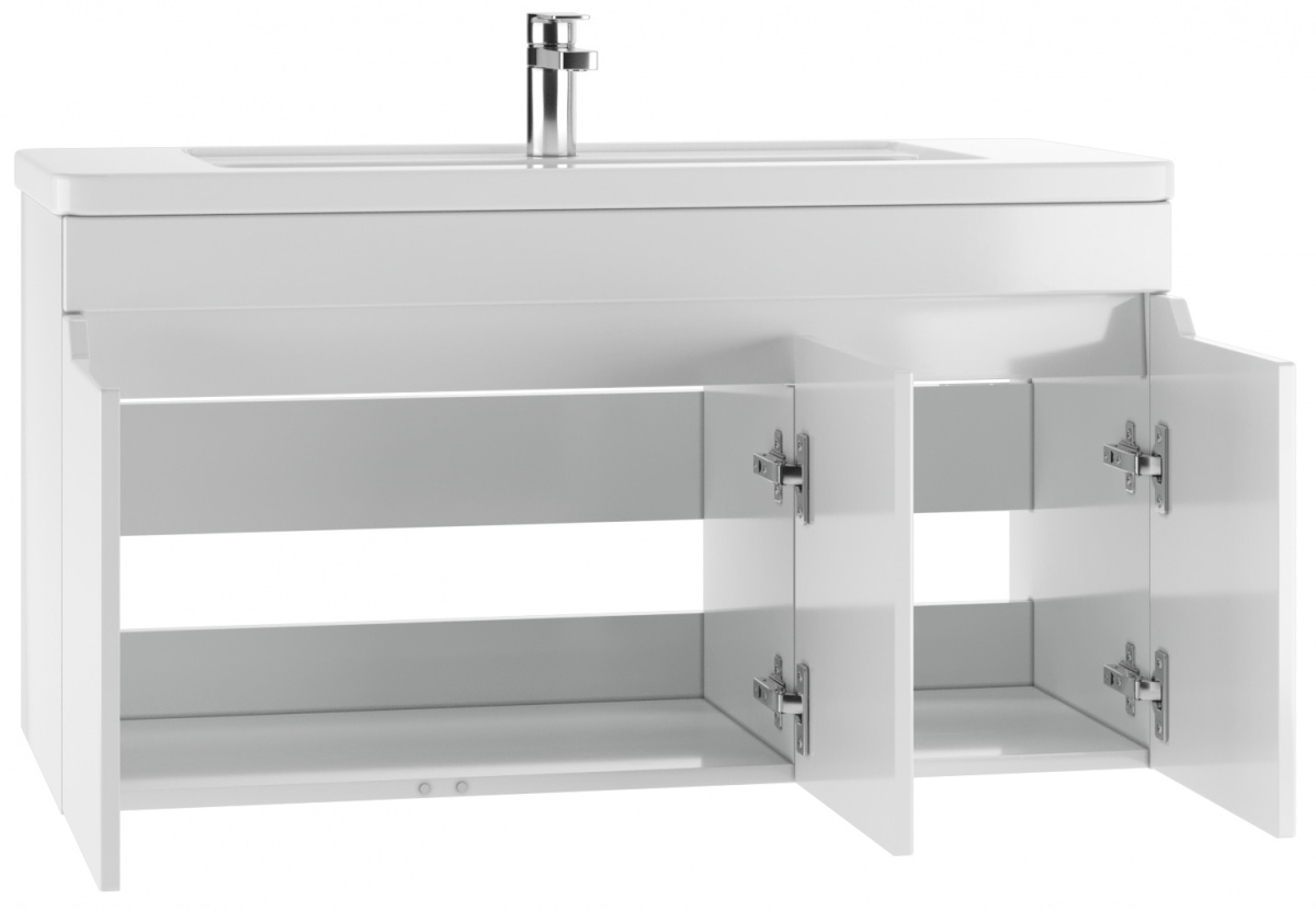Тумба подвесная под умывальник ""Maria 100"" Мечта без ящика АЙСБЕРГ является идеальным решением для вашей ванной комнаты, создавая ощущение простора благодаря особой конструкции. Мебель выполнена из ЛДСП и МДФ с пленкой ПВХ, что гарантирует долгий срок службы. Глянцевое покрытие придаёт белую поверхность не только эстетическую привлекательность, но и упрощает уход за ней.