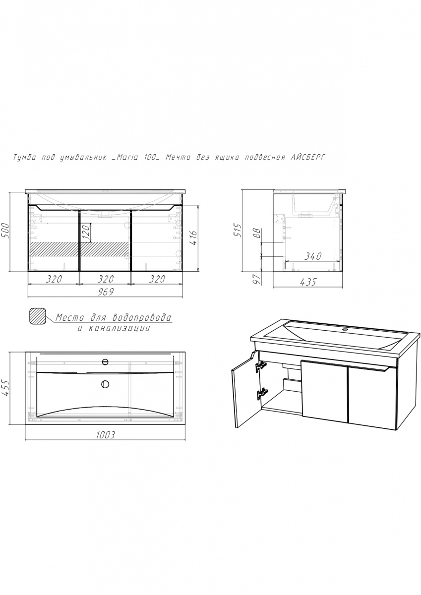 Тумба под умывальник Maria 100 Мечта без ящика подвесная Айсберг Домино (DM2328T)