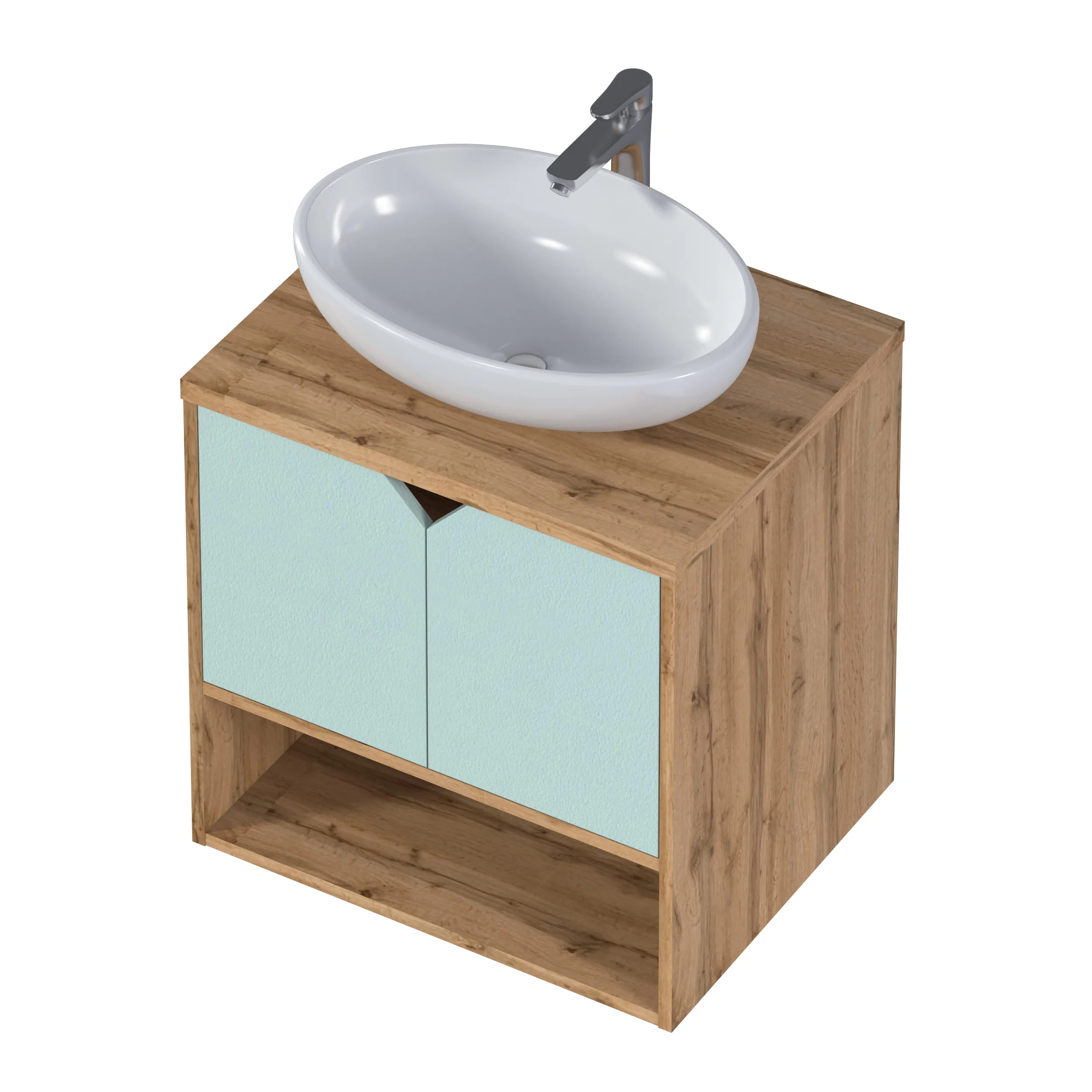 Подвесная тумба Delta — глоток свежести и легкости для ванной комнаты. Ручка в форме треугольного выпила добавляет загадочности модели.