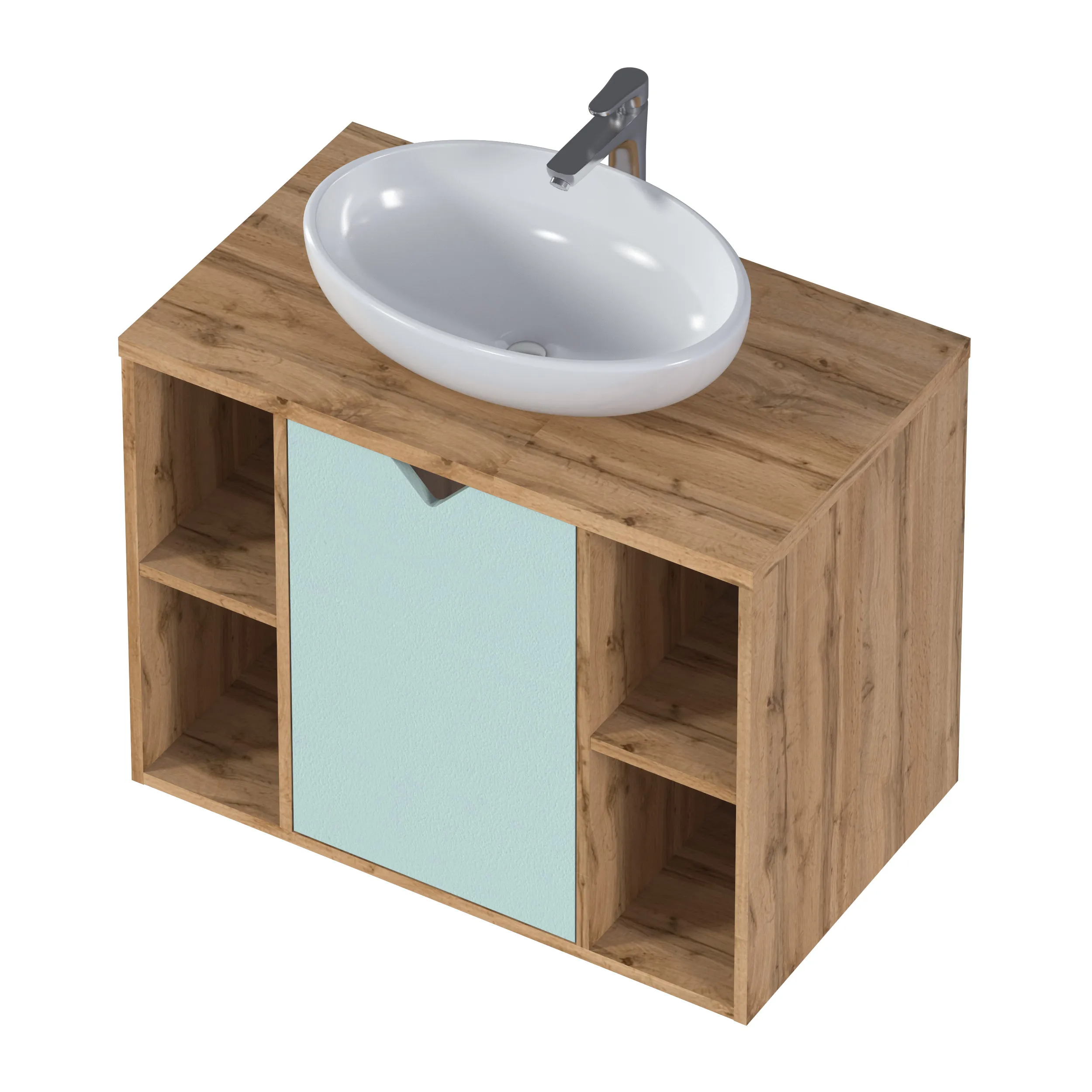 • Материал фасада – МДФ, облицованная матовой пленкой ПВХ, светлый деревянный корпус из влагостойкой ЛДСП. Благодаря этому тумба надолго сохранит первозданный вид в условиях повышенной влажности ванной комнаты.