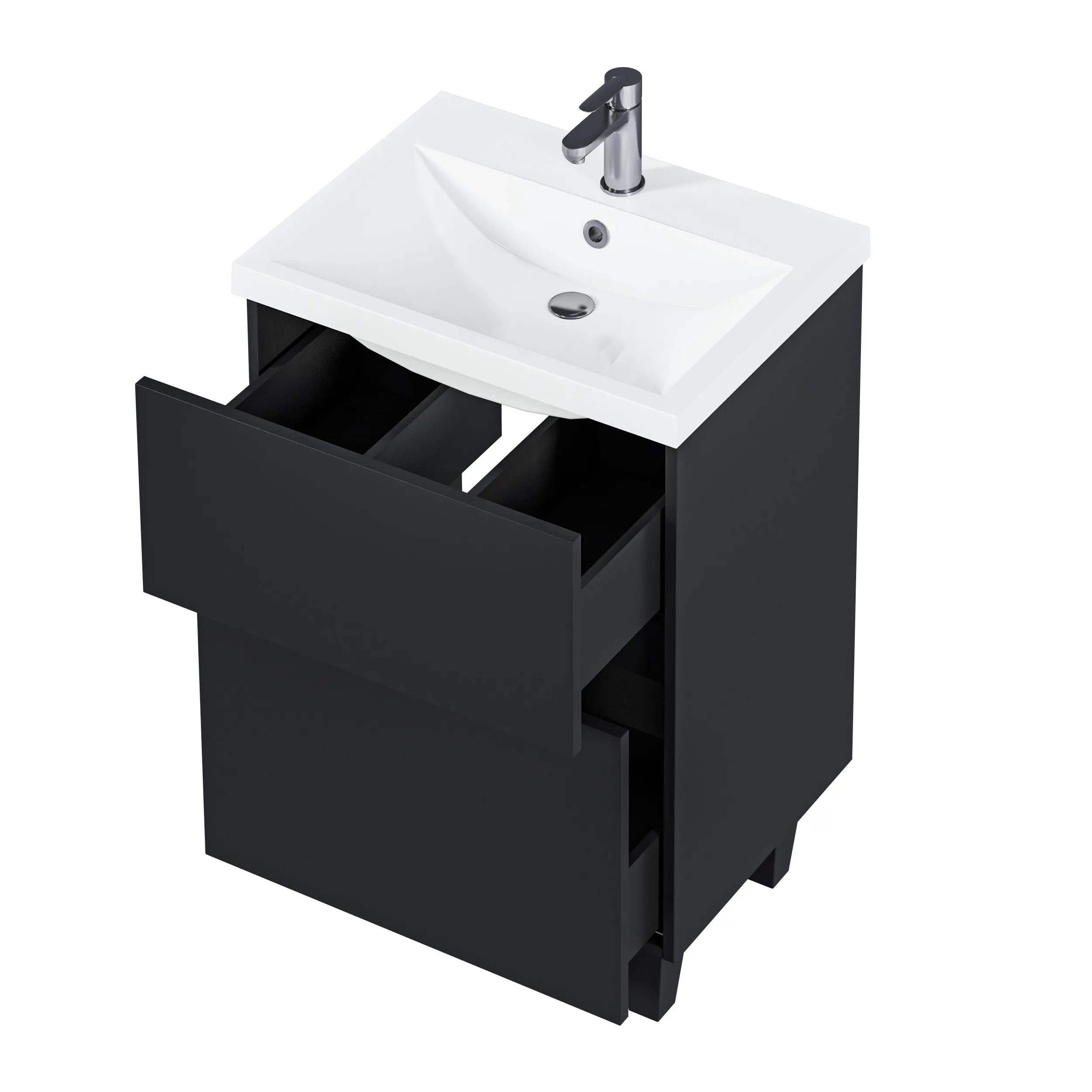 • Выдвижные ящики позволят эффективно организовать хранение различных предметов – средств личной гигиены, косметики, полотенец, бытовой химии, а механизм плавного и бесшумного закрывания добавит удобство в эксплуатации.